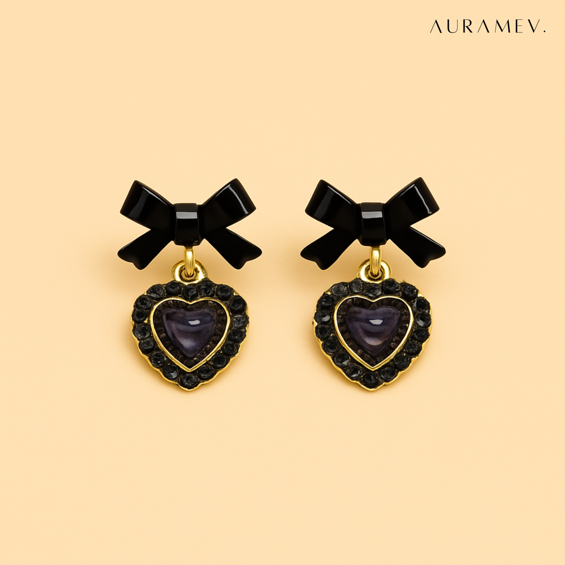Featuring glossy black bows and heart-shaped faux gemstones framed in radiant gold detailing, these earrings bring that luxury look without the heavy price tag. Lightweight and versatile, they're ideal for date nights, parties, or an everyday glam.