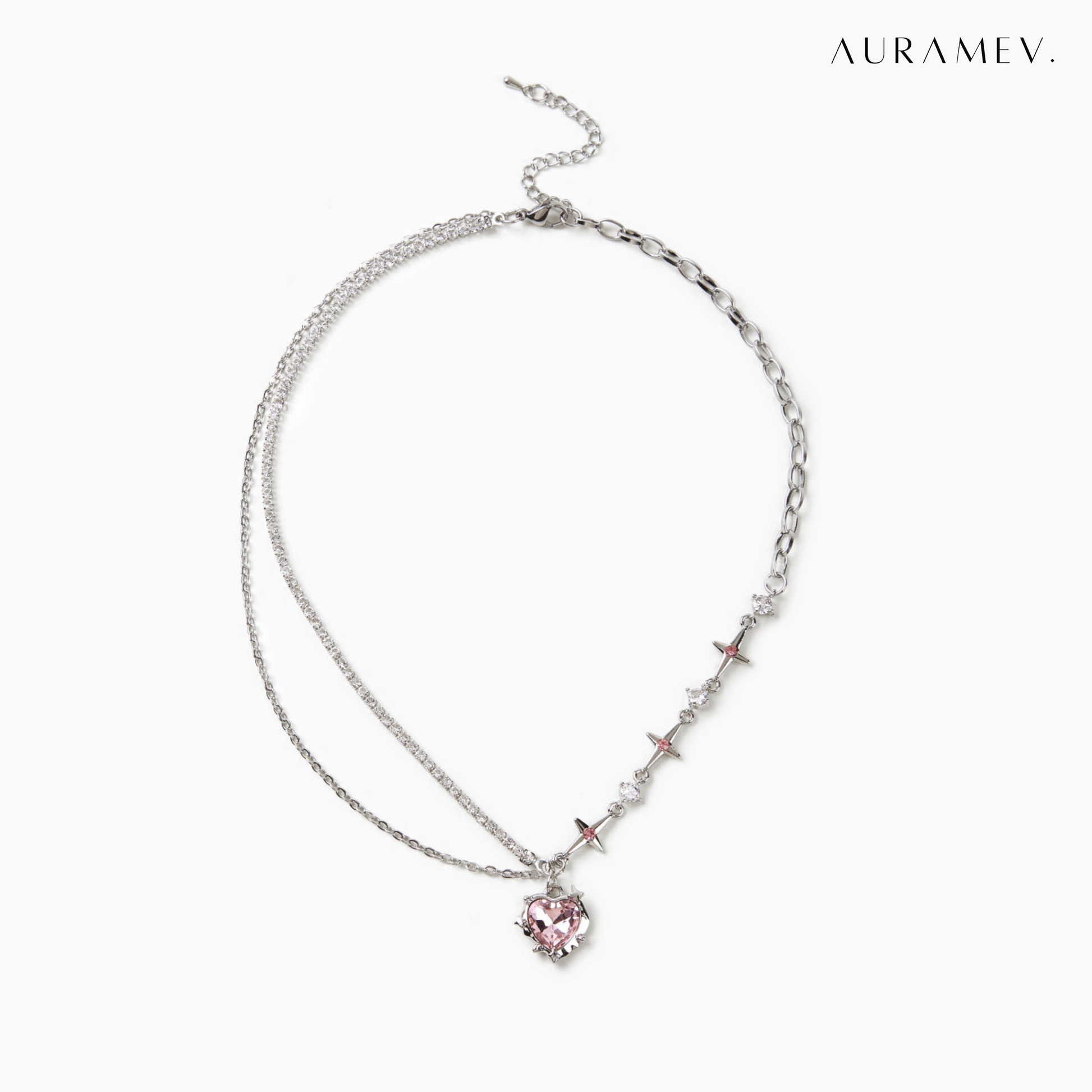 Featuring a dual chain style with twinkling rhinestones and delicate star design, this piece is crowned with a princess-cut pink heart pendant that catches light with every move. Whether you're layering it or letting it shine solo, this necklace is designed to make your neckline feel just a little more magical.