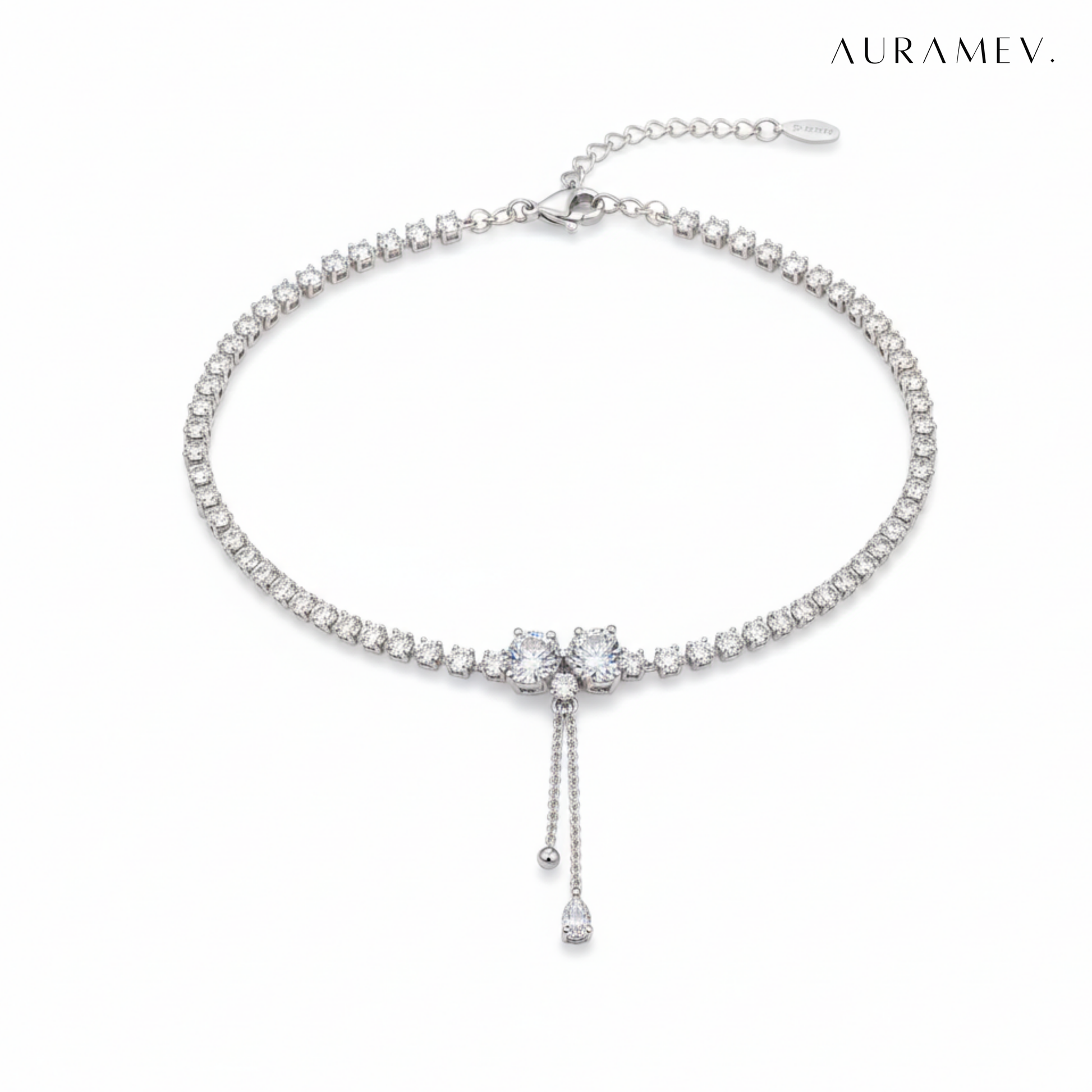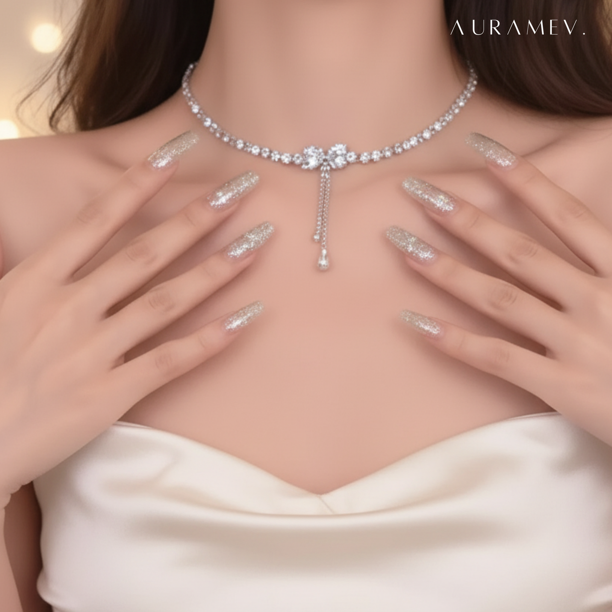 A little sparkle goes a long way and this one's got just the right amount. The Cute Bow Charm Choker features a Korean-style rhinestone chain with a charming bow at the centre, complete with a twin drop chain detail. One end finish with a dainty pearl and the other with a glinting silver bead. It’s playful, shiny, and irresistibly pretty - the kind of choker that makes your own mirror reflection surprise you.